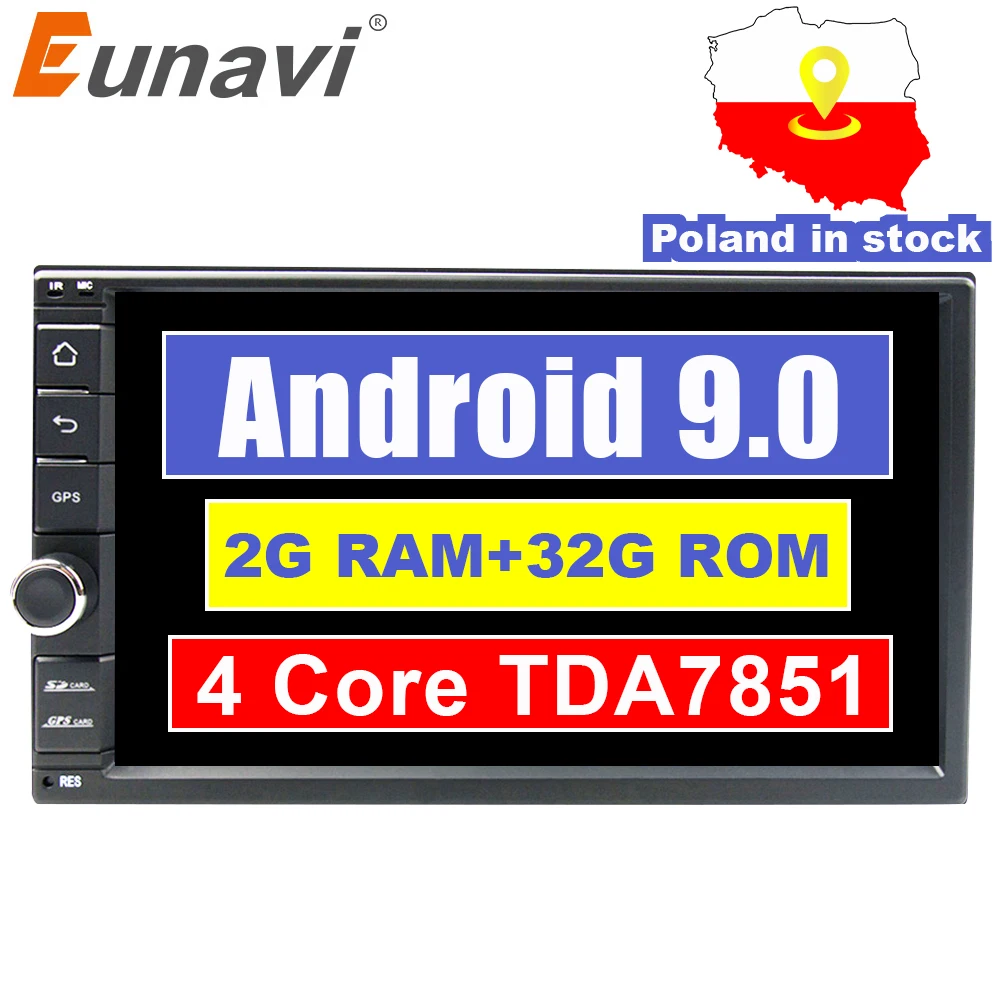 BEST Eunavi Universal 2 din Quad core 7'' Android 9.0 Car Radio Stereo multimedia Player WIFI 2din GPS N