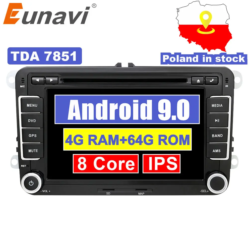 ORIGINAL Eunavi 2 Din Android 9.0 Car Audio DVD Player Radio For VW GOLF 6 Polo Bora JETTA B6 PASSAT Tiguan