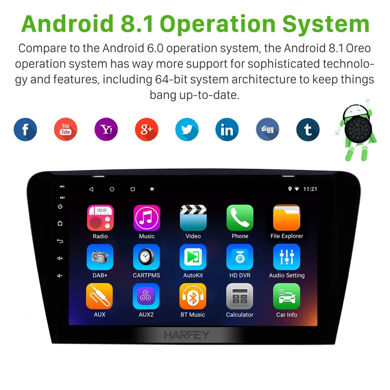 Review Top Harfey 10.1 Inch Android 8.1/9.0 Quad-core Car GPS Multimedia Navi Stereo Player For 2015 2016 2017