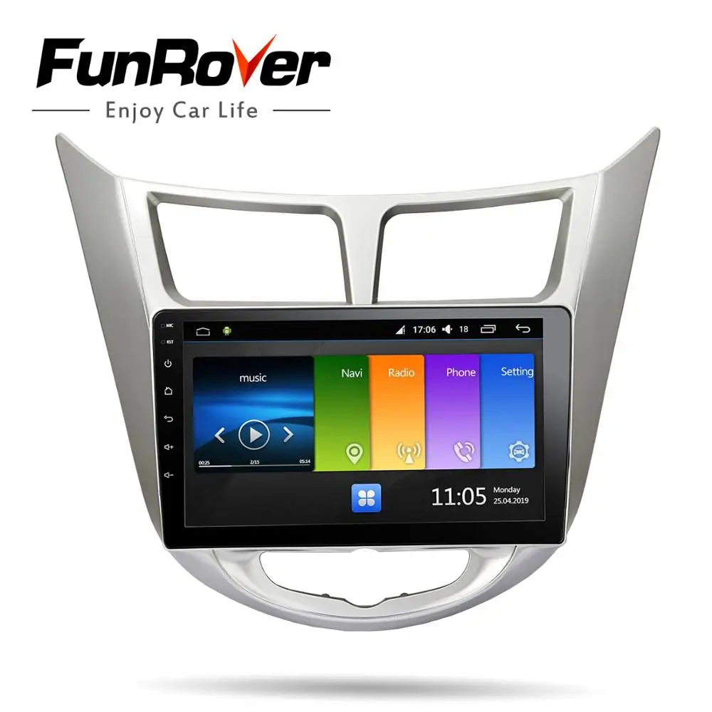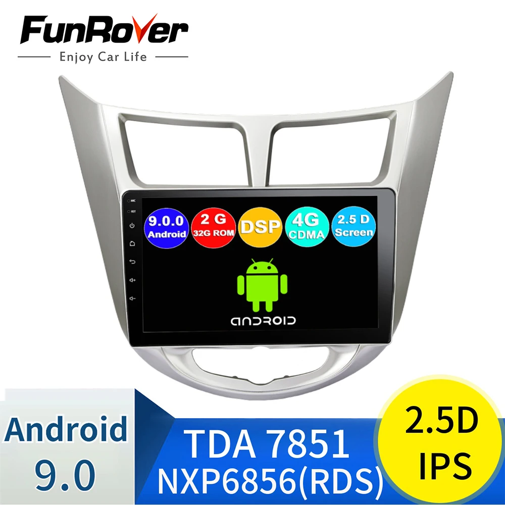 Funrover 2.5D+IPS android 9.0 Car Radio Multimedia Player dvd GPS Navigation For Hyundai Solaris Ve