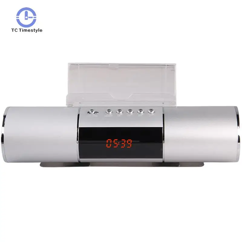 Long Cylinder Radio Alarm Clock Lazy Support Bluetooth Mobile Phone Speakers Plug-in Audio Usb Char